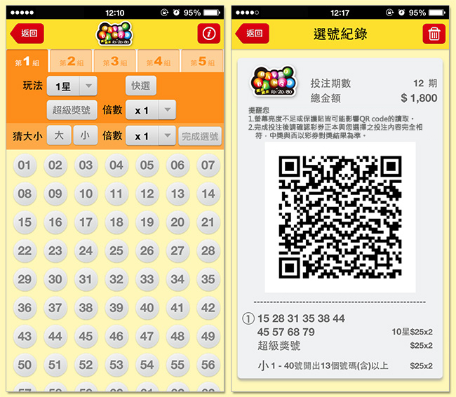 注意事項:彩券銷售後如遇有加開期數之情況,多期投注之期數將順延。若彩券上的資料和電腦紀錄的資料不同,以電腦紀錄資料為準。